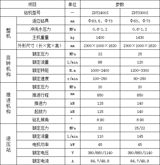 2. 采用雙泵系統,回轉和給進參數獨立調節,變量馬達可以進行無級調速,調高了鉆機對不同工況的適應能力;