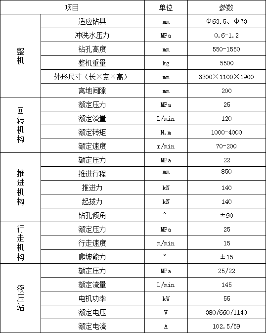 3. 履帶行走,大大提高移鉆、穩鉆的效率,顯著減輕工人的體力勞動強度;