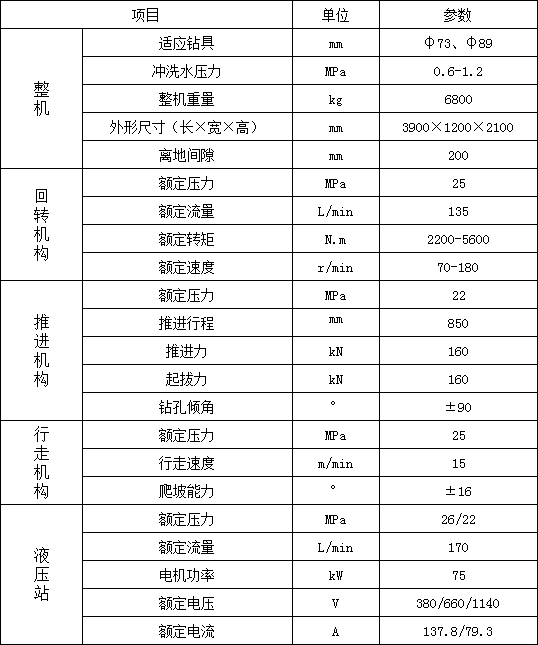 4. 采用雙泵系統,回轉和給進參數獨立調節,變量馬達可以進行無級調速,調高了鉆機對不同工況的適應能力;