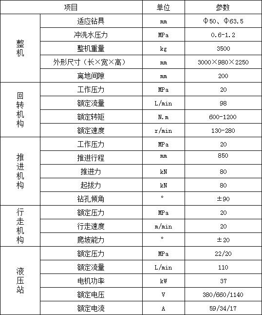 1. 履帶行走,大大提高移鉆、穩鉆的效率,顯著減輕工人的體力勞動強度;